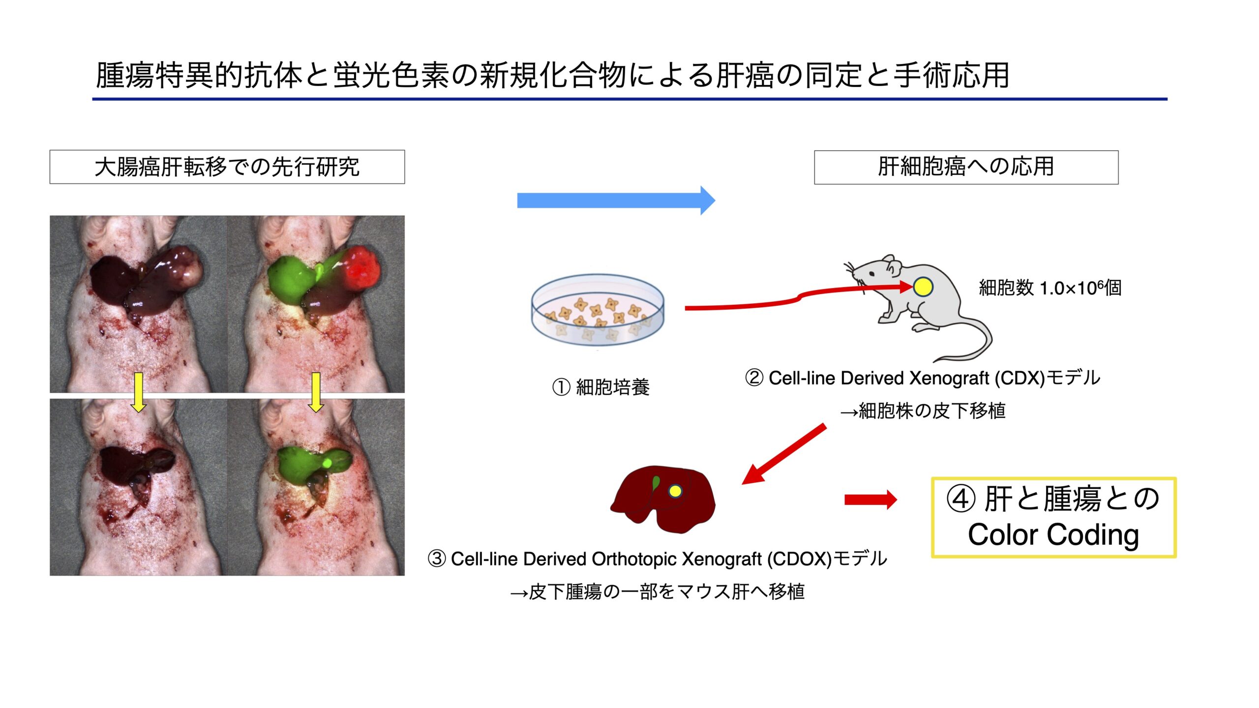 - 腫瘍特異的抗体と蛍光の接合化合物を用いた新たな蛍光ガイド手術の確立 (西野)
